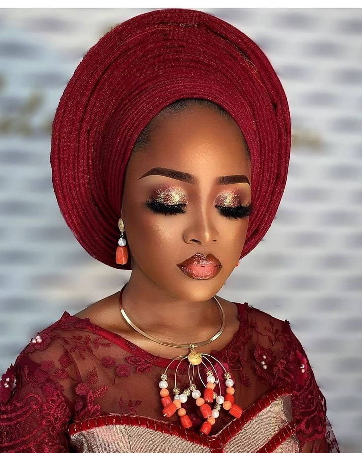 Traditional vs. Contemporary: Nigerian brides can select from a wide variety of traditional looks, each with a distinct makeup style. Think on how you would like to look—either softer and more subtle to go with a modern white gown, or bold and colorful to go with your Aso Oke.